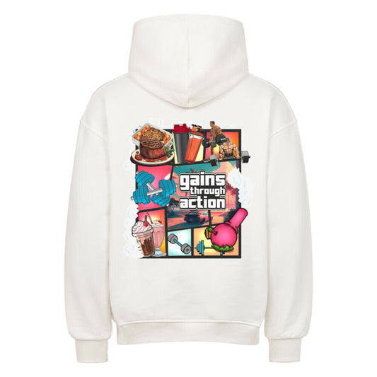 GAINS THROUGH ACTION Oversized Premium-Hoodie (Backprint)