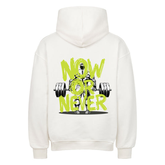 NOW OR NEVER Oversized Premium-Hoodie (Backprint)